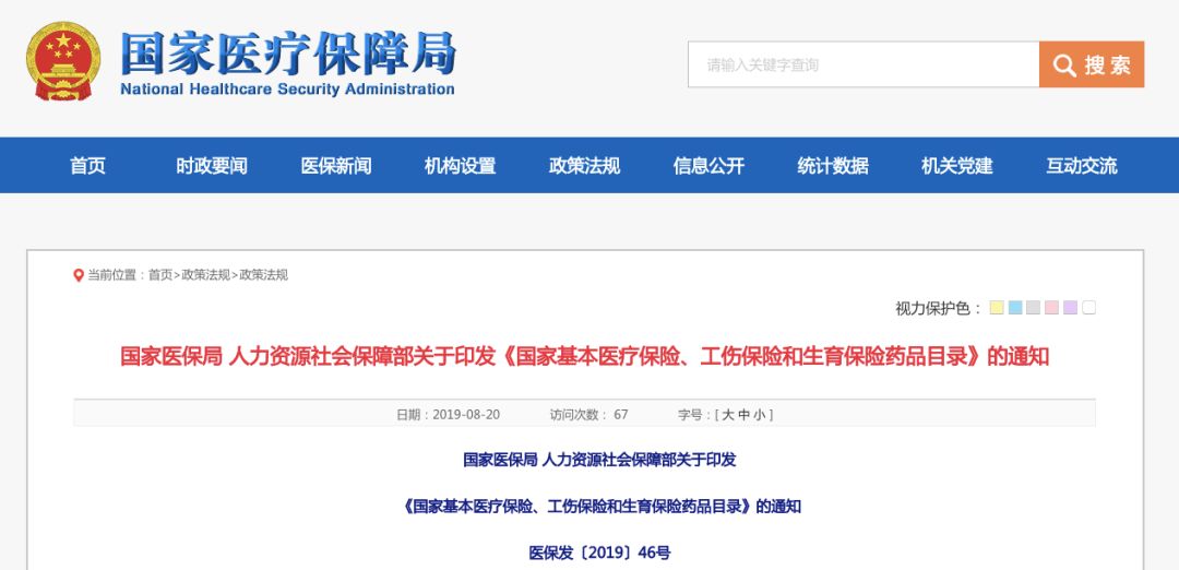 8月20日,国家医保局官网发布《国家基本医疗保险、工伤保险和生育保险药品目录》,公布了2019年版国家基本医疗保险、工伤保险和生育保险药品目录。